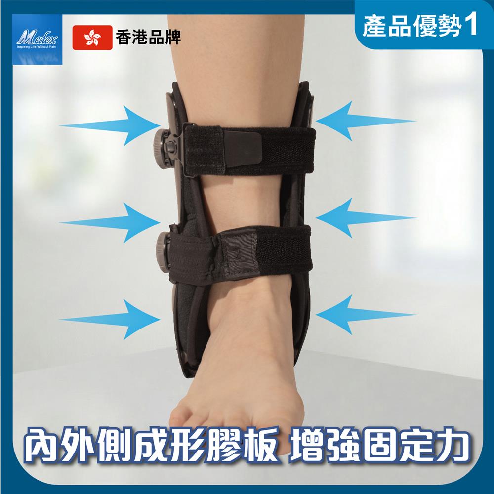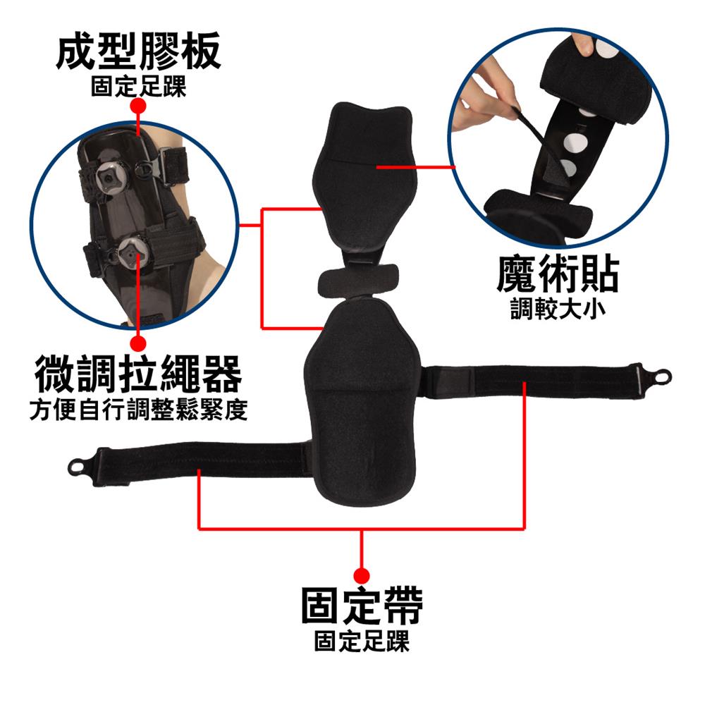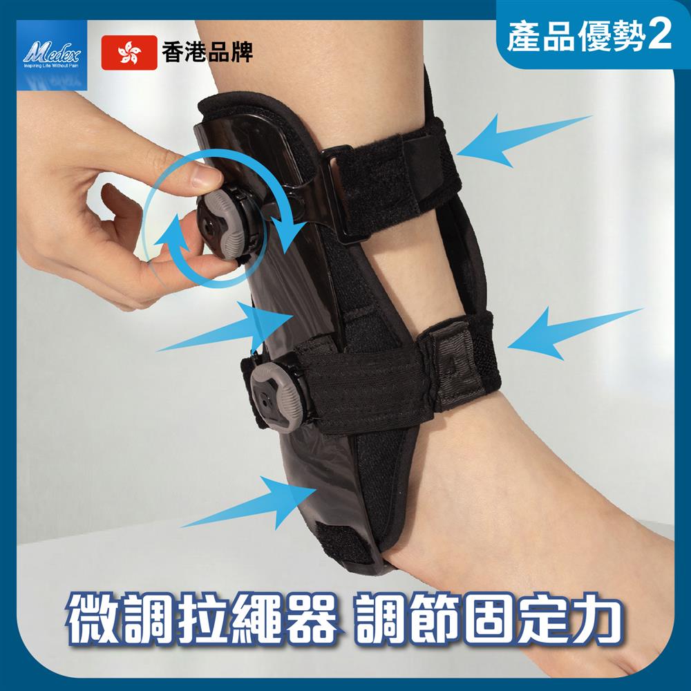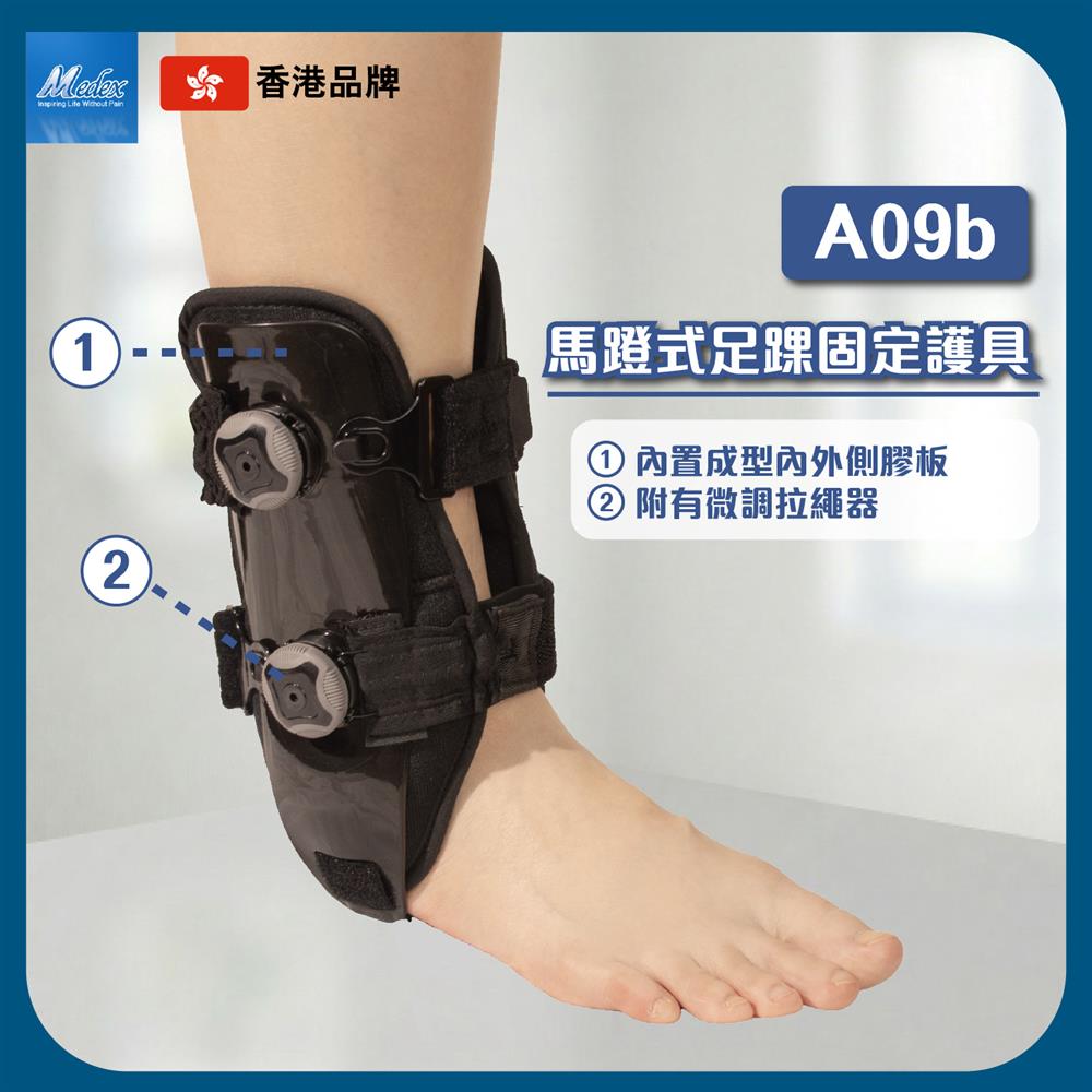 A09b 馬蹬式足踝固定護具(護踝)- 採用馬蹬式結構設計,配備拉繩微調固定器,可自行精準調節鬆緊度,內置成型內外側膠板,配合腳底連結支撐及柔軟海綿內墊,有效穩定足踝關節並提升佩戴舒適度。適用於治療一級、二級及三級足踝扭傷(拗柴)(包括有腫脹情況)、足踝扭傷、穩定性骨折、韌帶鬆脫,以及手術或拆石膏後之保護及康復期使用。